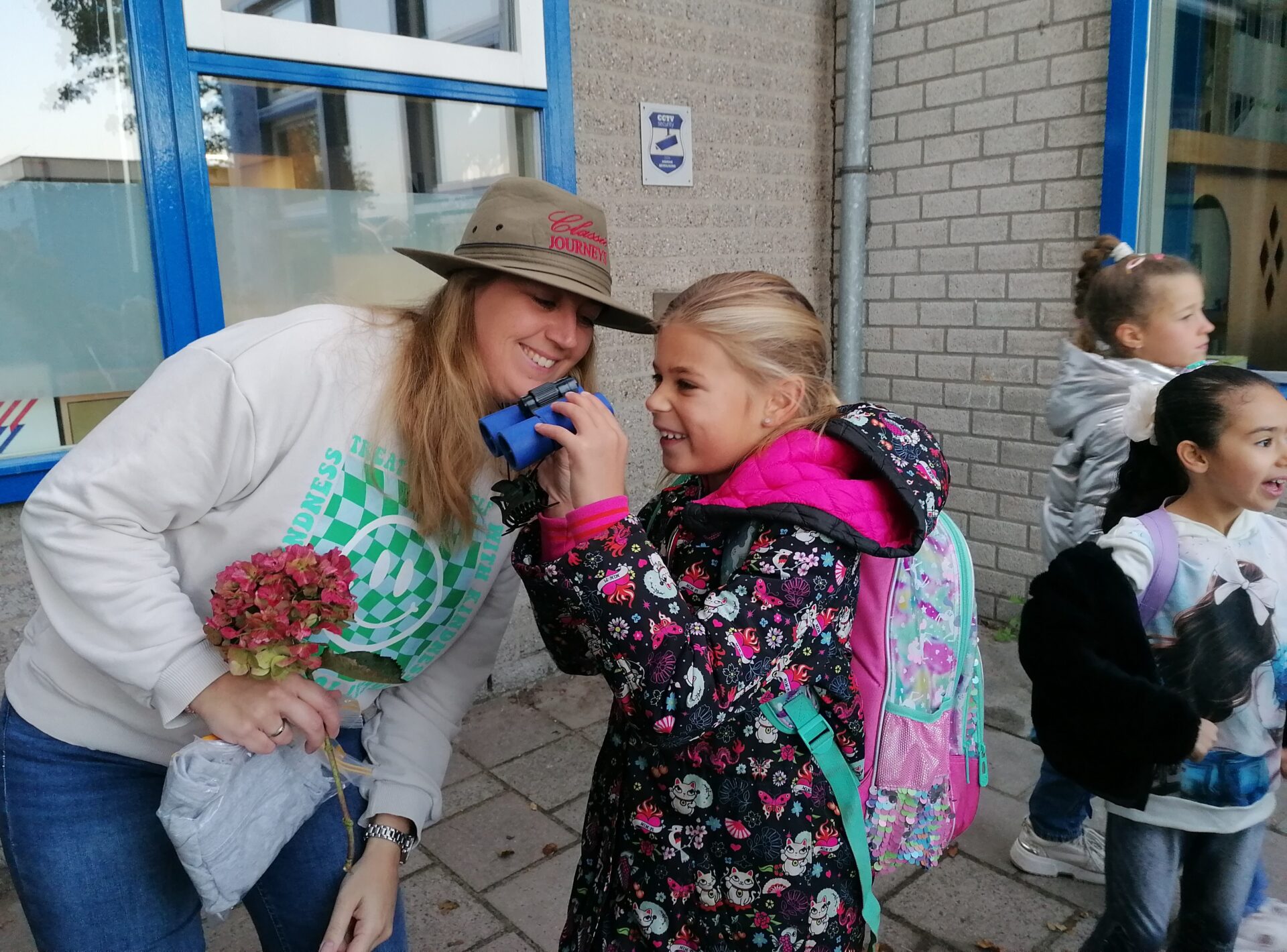 OP avontuur met de leerkrachten die op expeditie of onderzoek uit waren op het schoolplein.